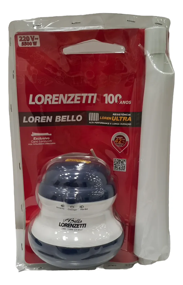 Chuveiro Loren Bello Lorenzetti 3T Azul 220V 5500W com Cano 30cm